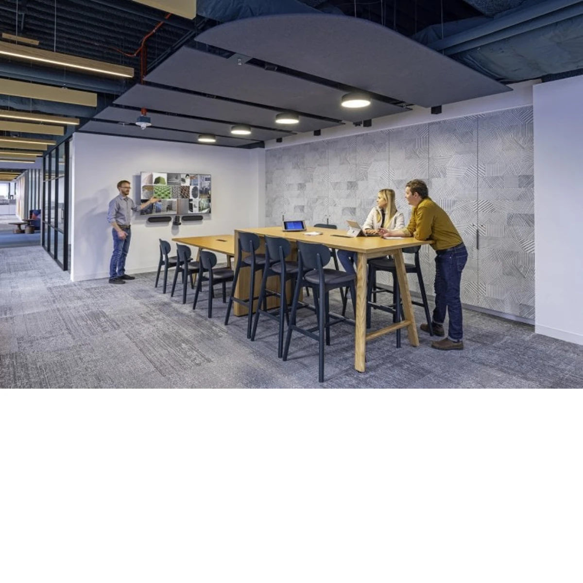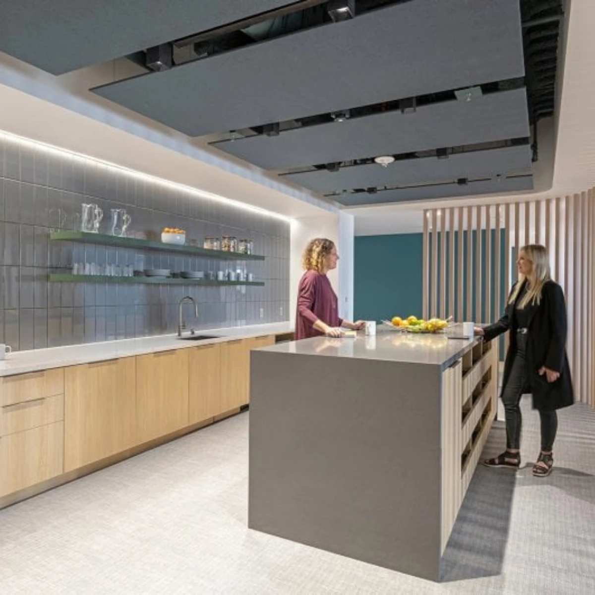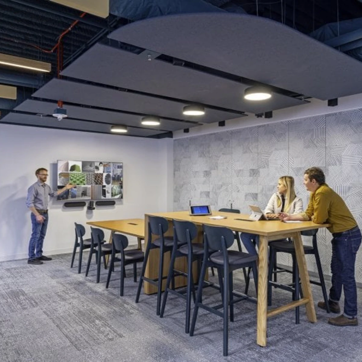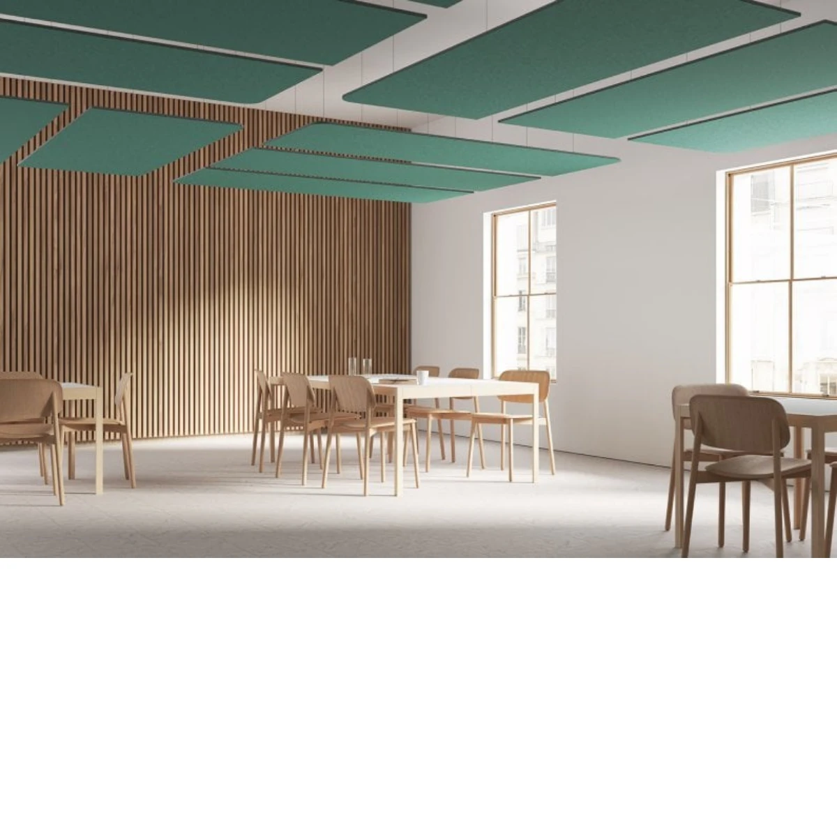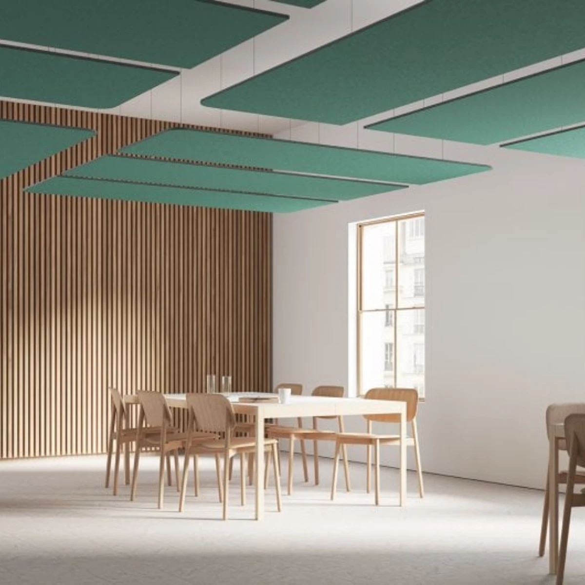 Hệ thống tấm tiêu âm gắn trần hấp thụ tiếng ồn và cải thiện âm học cho mọi không gian.